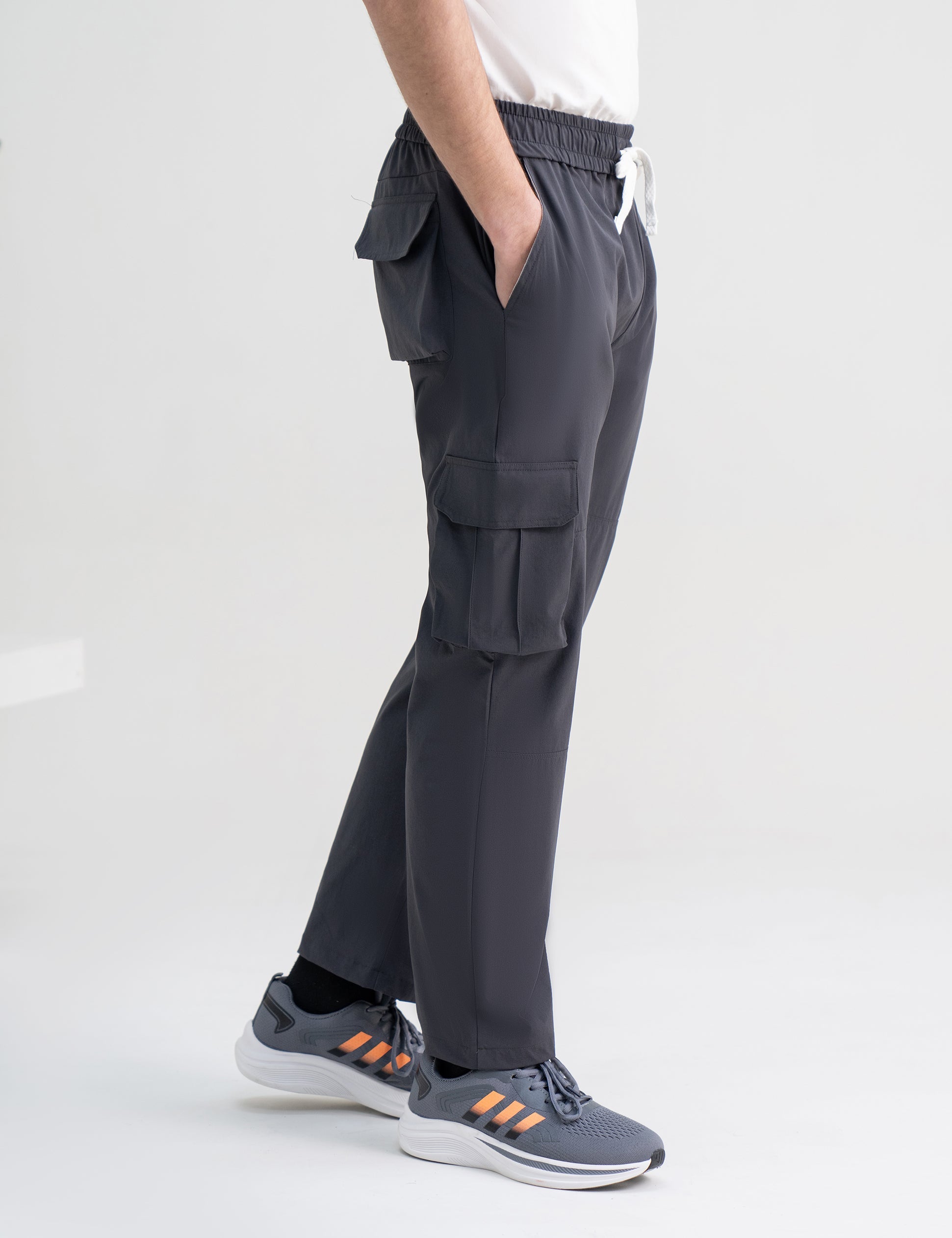 Loose-bottom cargo pants crafted from premium imported nylon stretch fabric, offering a refined feel with superior comfort. The lightweight, breathable construction ensures effortless wear throughout the day, while the flexible structure provides ease of movement without losing shape. Designed with clean utility cargo pockets and a modern relaxed silhouette, these trousers deliver a polished yet casual look—perfect for elevated everyday styling and contemporary street wear.