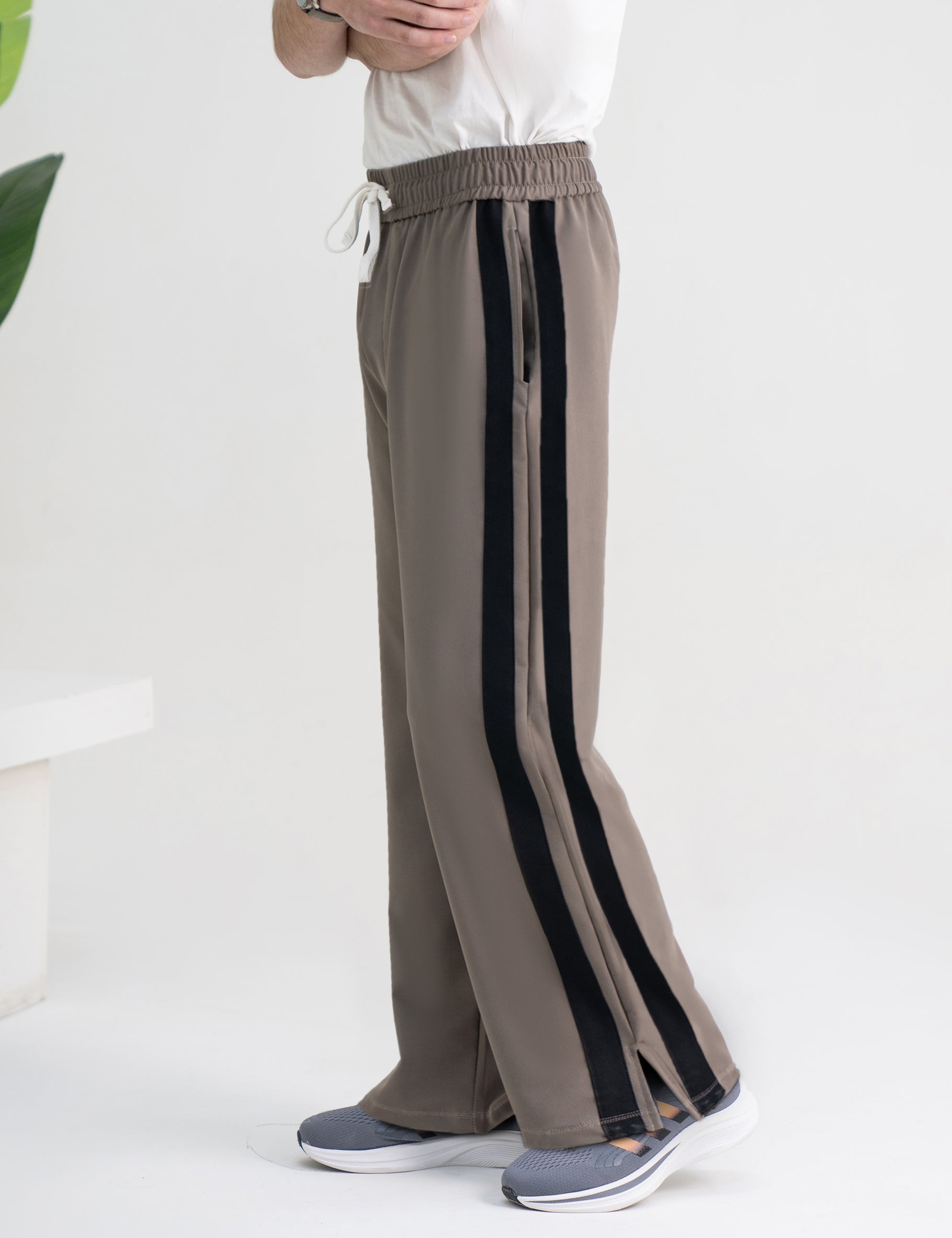 Loose-bottom trousers made from premium woven terry IMP fabric, designed for all-day comfort. Featuring clean side stripes, these pants give a relaxed yet sporty vibe—perfect for casual wear, travel, or everyday styling