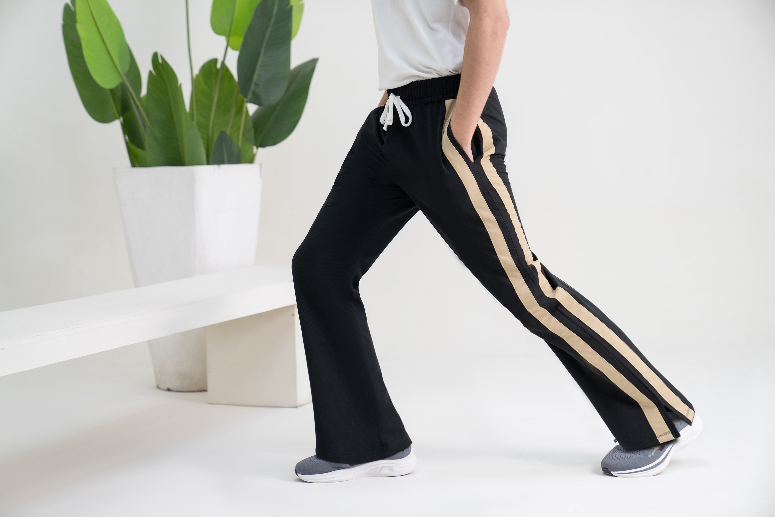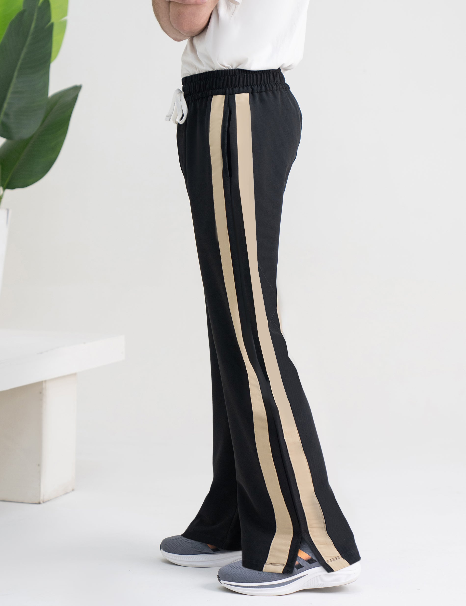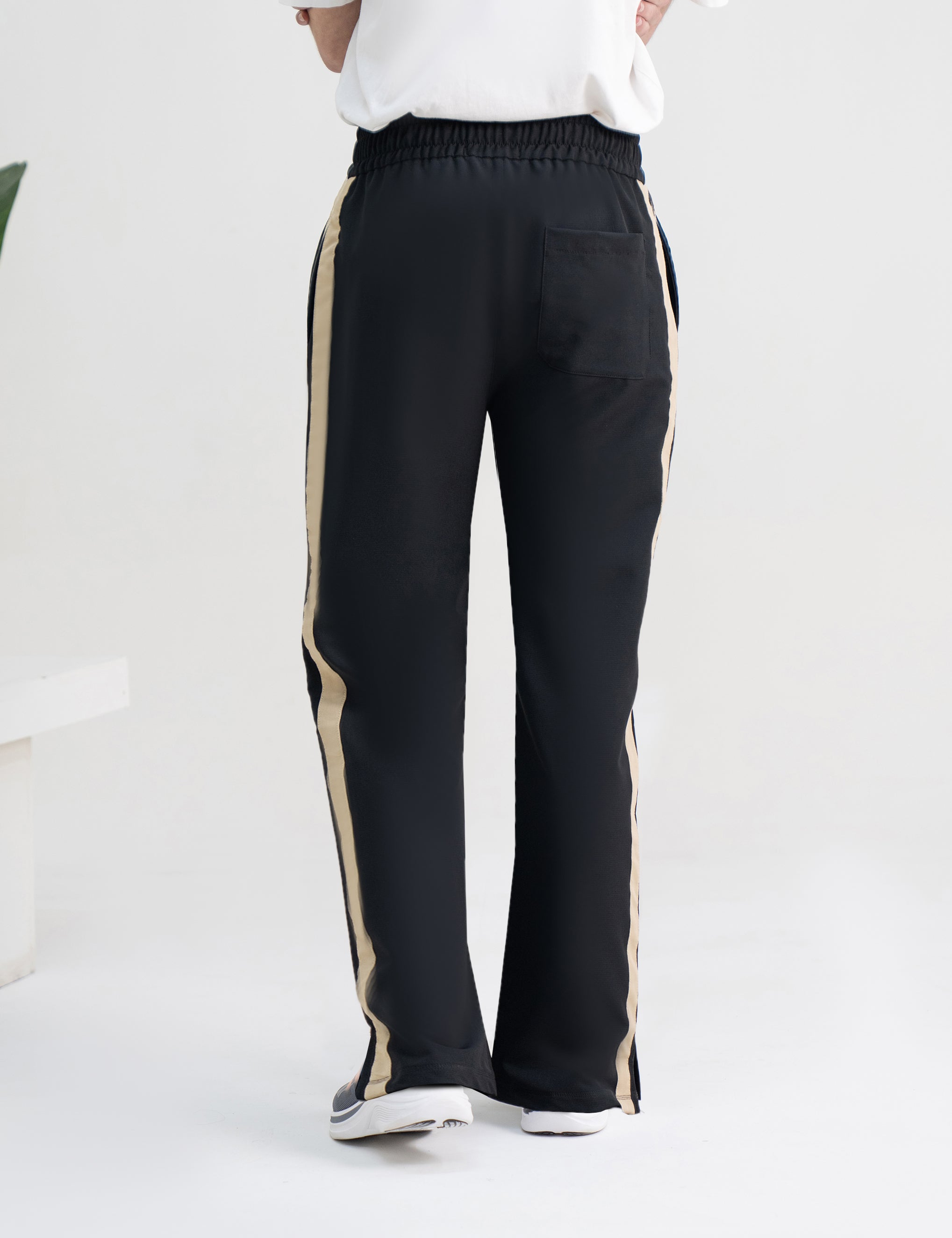 Loose-bottom trousers made from premium woven terry IMP fabric, designed for all-day comfort. Featuring clean side stripes, these pants give a relaxed yet sporty vibe—perfect for casual wear, travel, or everyday styling